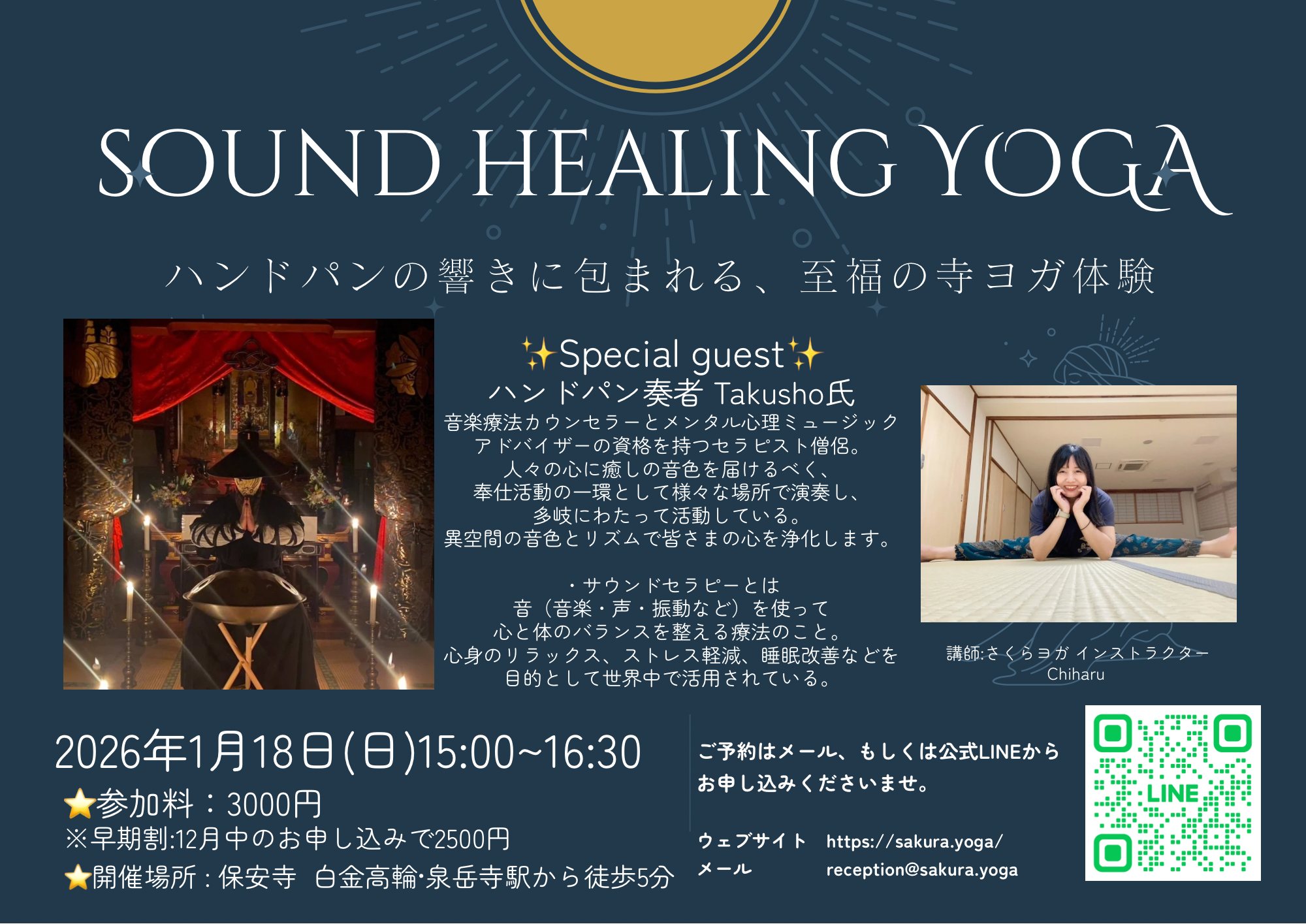 2026年のはじまりにふさわしい、ハンドパン生演奏つき特別ヨガクラスを開催いたします!