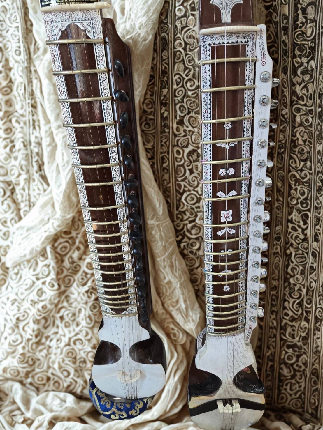 インドのベンガル地方で発展した弓奏擦弦楽器で、ヒンドゥスターニー古典音楽やタゴールソングの伴奏などで用いられます。外見はシタールとサーランギの中間的な形を持ち、メロディ弦・共鳴弦を備え、弓で演奏されます。人の声に近い滑らかで、静かに流れるような内省的音世界が特徴です。インドの旋律ラーガの微細な音程変化やガマカなどを豊かに表現できる楽器です。